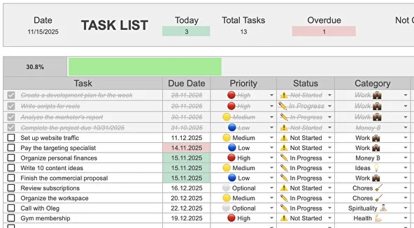 A convenient task list that keeps everything under control. Manage all your tasks in one place, prioritize them, and make guaranteed progress toward your biggest goals.
