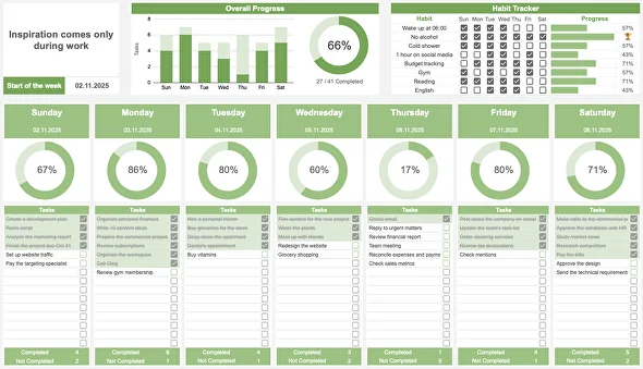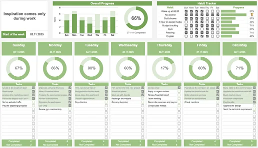 A bundle for those who want to manage both time and money in one system. The finance tracker gives you a clear picture of your income and spending, while the weekly planner helps you organize your tasks.